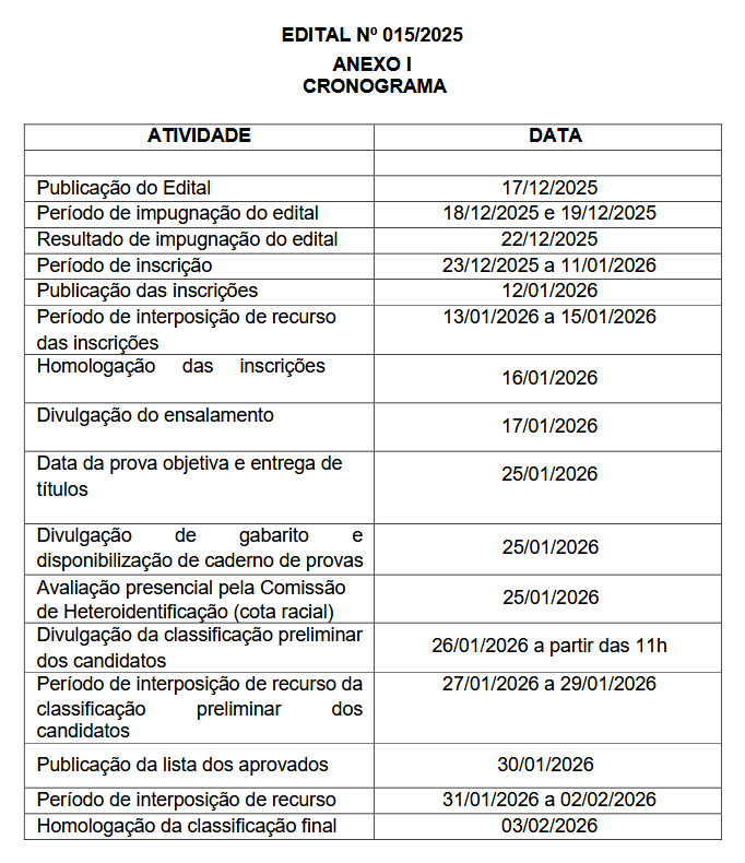Data da prova objetiva e entrega dos títulos: 25/01/2026