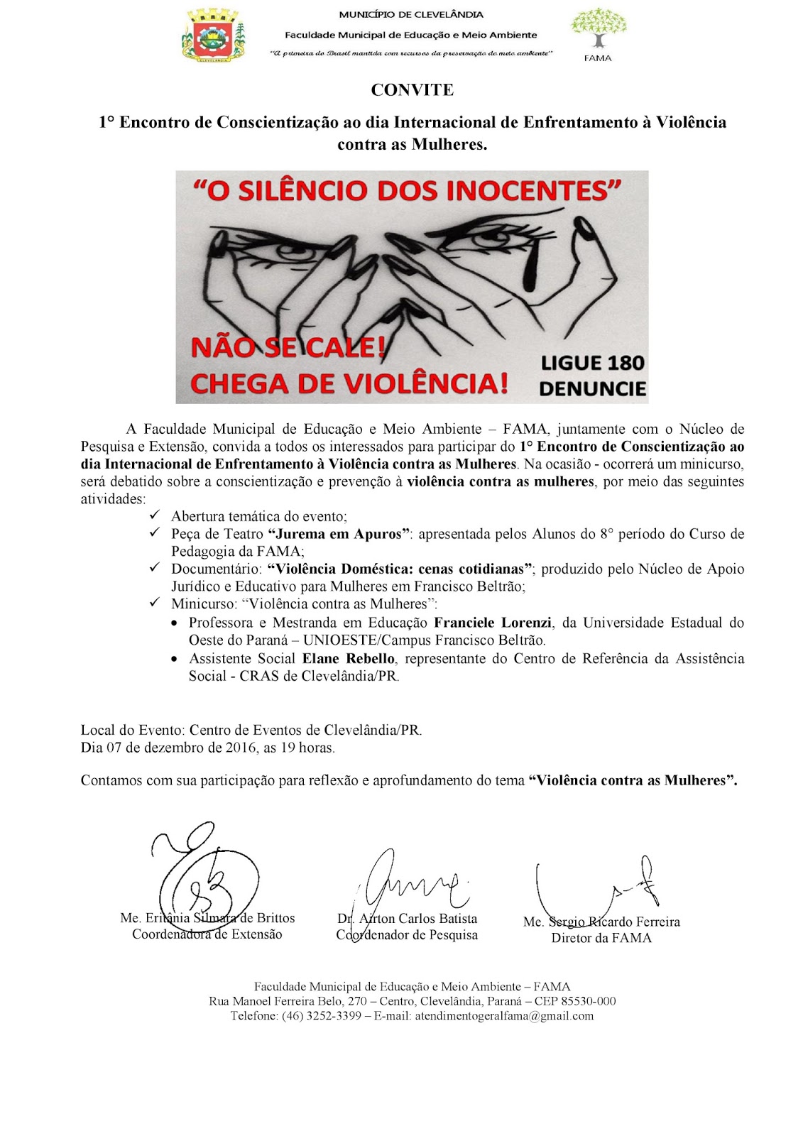 1º Encontro de Conscientização ao dia Internacional de Enfrentamento à Violência contra as Mulheres