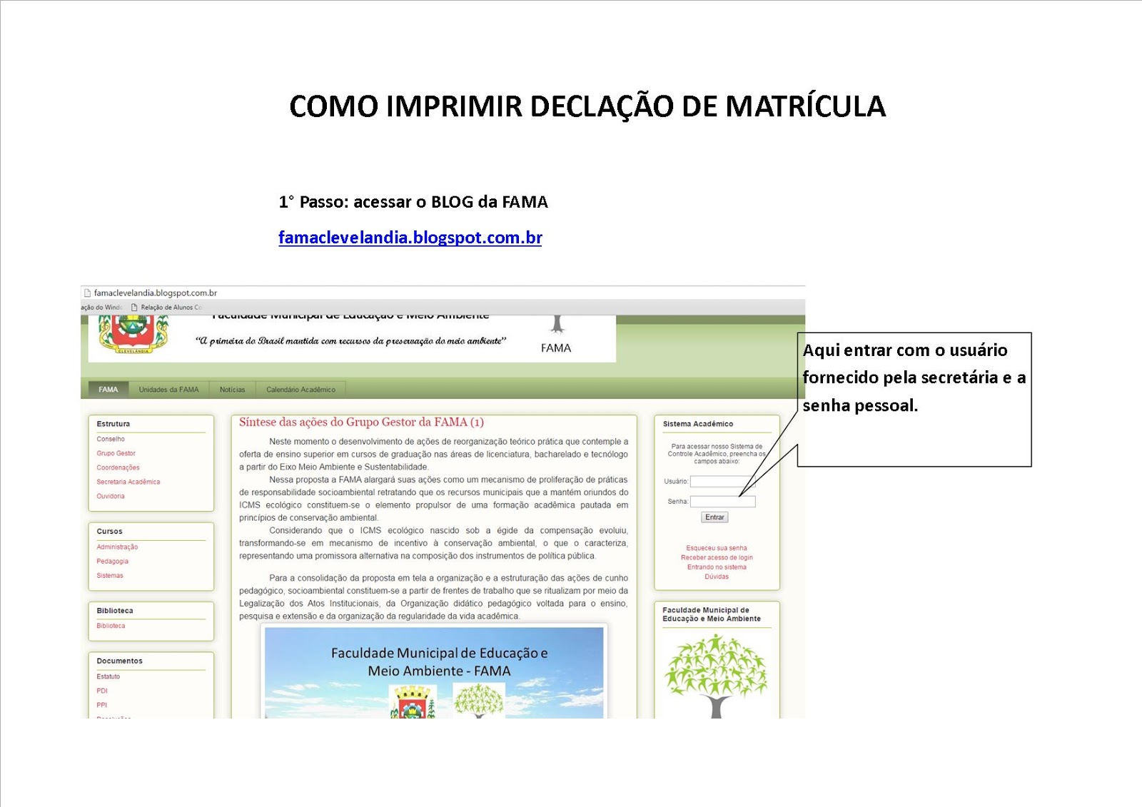 A Secretaria Acadêmica e o Grupo Gestor tornaram possível aos próprios acadêmicos imprimirem suas declarações de matrícula. O objetivo da Secretária e do Grupo Gestor é agilizar os processos internos e decentralizar os recursos acadêmicos. Agora os acadêmicos tem a opção de imprimir em casa a declaração e trazer para a secretária o documento apenas para ser assinado pelo secretário acadêmico.