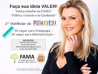 O candidato que for selecionado terá sua matrícula garantida para o ano de 2017 na FAMA.
