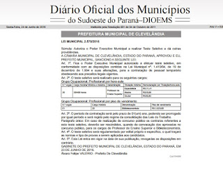 O Prefeito, Alvaro Felipe Valerio, sancionou duas leis que criam e autorizam teste seletivo para contratação de professores em caráter emergencial. As leis foram publicadas no Diário Oficial do Município nesta sexta-feira (24/06). O Edital para a realização do Processo Seletivo será publicado nos próximos dias.